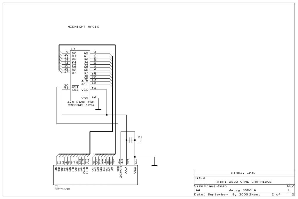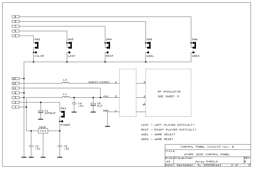 Le circuit est composé d’une puce CD4050 qui fonctionne comme un tampon apportant plus d’ampérage pour les signaux du TIA en entrée. Ce composant nécessite une alimentation de 5V DC que vous pouvez reprendre sur la carte mère de la console.
